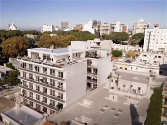 Proyectado en 4 pisos, más planta baja, con 11 unidades por piso. Además en el subsuelo contará con plazas de garaje. En el último piso contará con variedad de amenities: dos barbacoas de uso común, gimnasio equipado, amplio solárium y laundry. Además, en el mismo piso se ubicarán los 5 parrilleros de uso exclusivo. Unidad 409 43 mts totales Contrafrente
